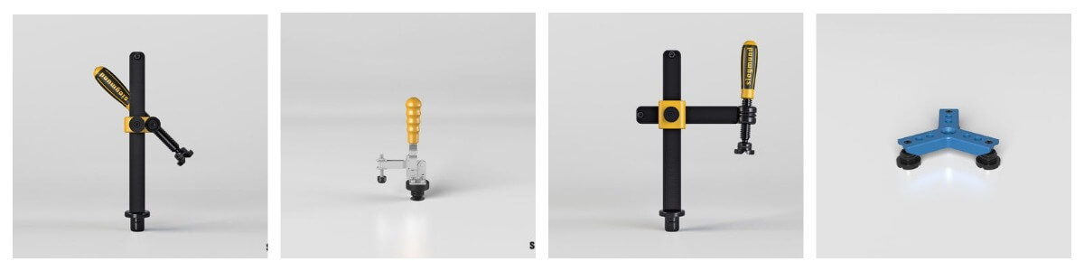Используют в тех случаях, когда важно соблюсти точный угол соединения. Угловые струбцины благодаря сквозным отверстиям на корпусе, легко крепятся на стол или верстак. Но имеют ограниченные возможности при необходимости фиксации крупных элементов.