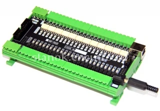 Для подключения внешних устройств используются колодки с винтовыми зажимами для проводов XT4, XT6. Для подачи внешнего питания входов/выходов используются колодки XT3, XT5. Для сигнализации о текущем состоянии, напротив клемм каждого входа/выхода, установлены световые индикаторы. Зелёного цвета для входов и красного для выходов. Программирование контроллера и отладка программы электроавтоматики осуществляется от персонального компьютера через разъём X7 (USB тип B).